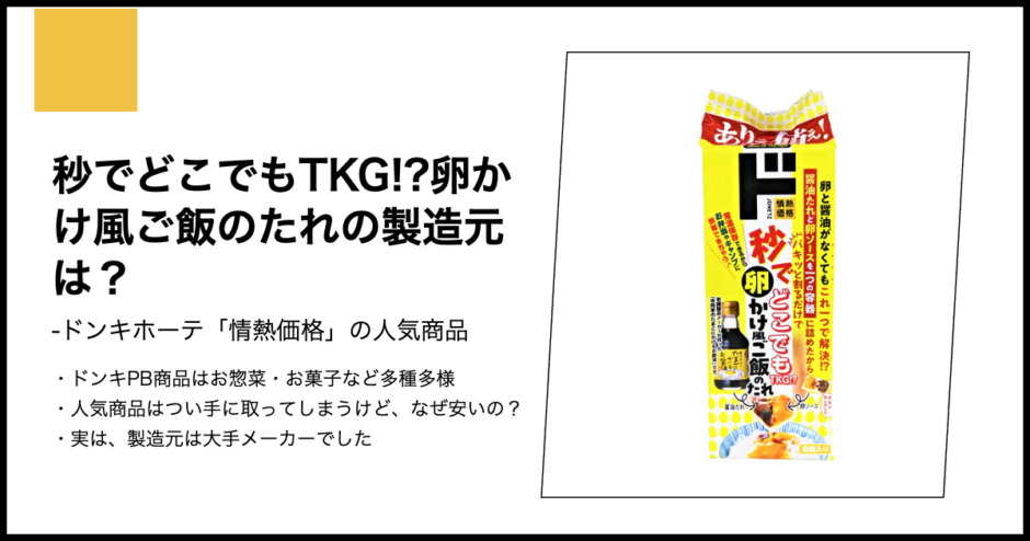 ドン・キホーテのプライベートブランドである情熱価格において、一際ユニークな名称で注目を集めているのが秒でどこでもTKG!?卵かけ風ご飯のたれです。生卵を用意せずとも、かけるだけで本格的な卵かけご飯(TKG)の味わいが楽しめると話題のこの製品ですが、一体どこのメーカーがこの「魔法の味」を支えているのでしょうか。ボトルの背面に隠された製造元の正体と、その圧倒的なクオリティを実現する専門的な背景を徹底調査しました。
