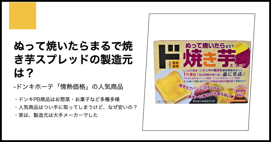 ドン・キホーテの看板商品である「焼き芋」の味わいを家庭で手軽に再現できると話題の「ぬって焼いたらまるで焼き芋スプレッド」。SNSでのバズをきっかけに、一時は入手困難になるほどの人気を博しました。この驚きの再現度を誇るスプレッドが、一体どこのメーカーの技術によって生み出されているのか、その正体と美味しさの裏側に迫ります。