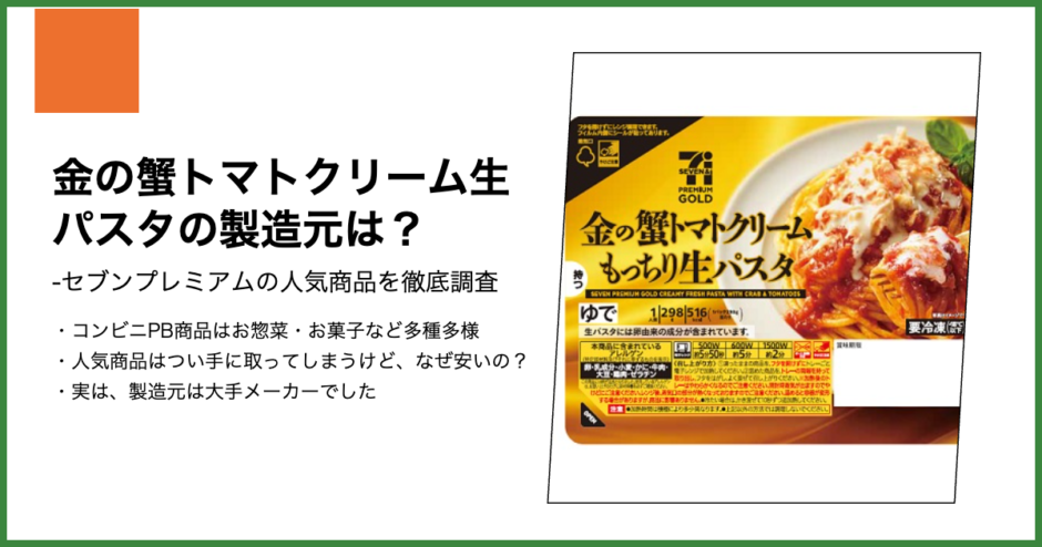 【セブンプレミアム】金の蟹トマトクリーム生パスタの製造元は?
