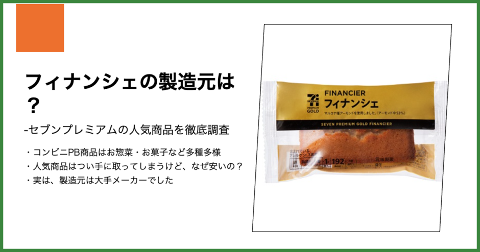 【セブンプレミアム】フィナンシェの製造元は?