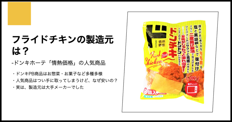 ドン・キホーテのプライベートブランドである情熱価格から展開されているフライドチキン。冷凍食品コーナーでもひときわ目を引くこの商品の正体について、製造元や品質の裏側を徹底調査しました。